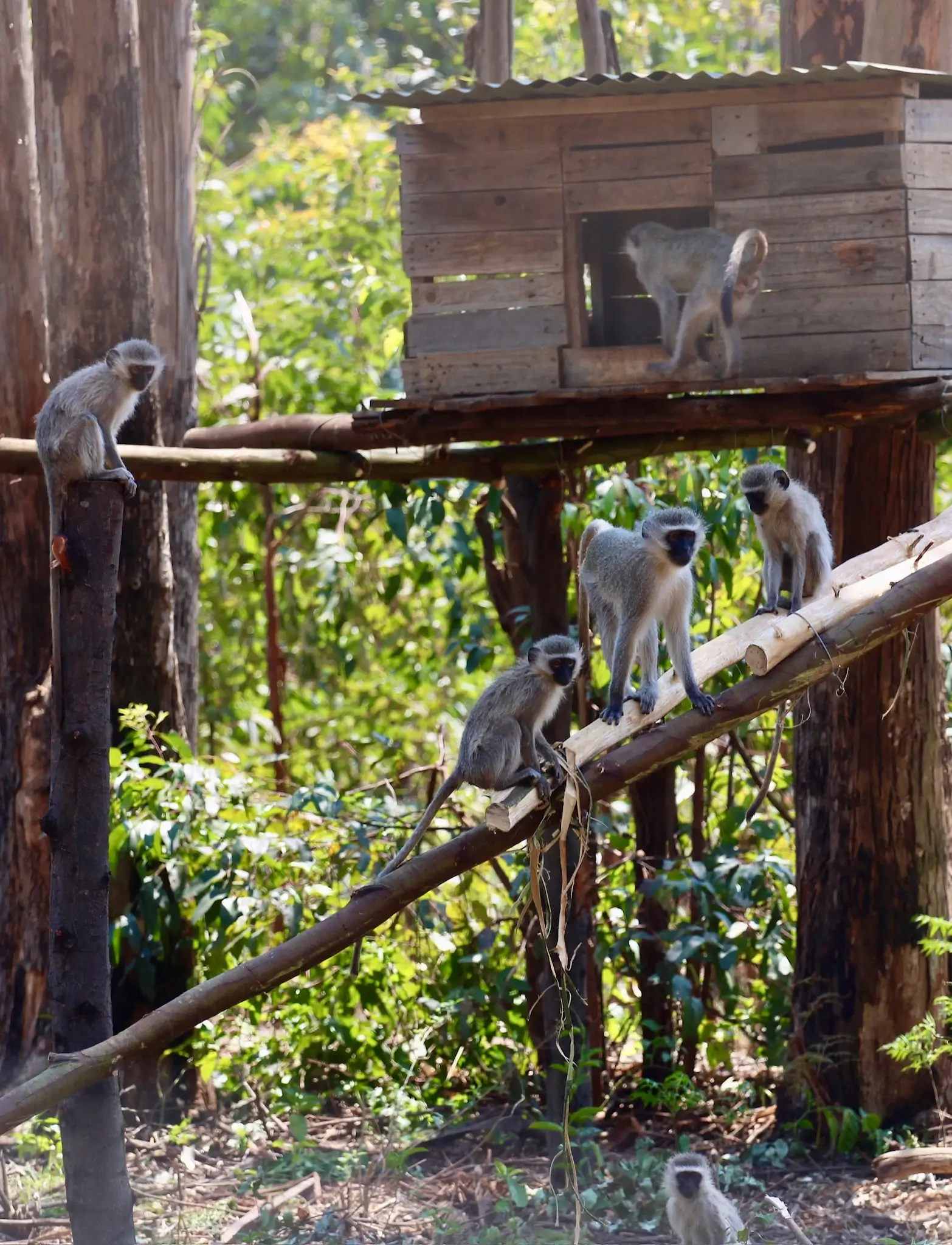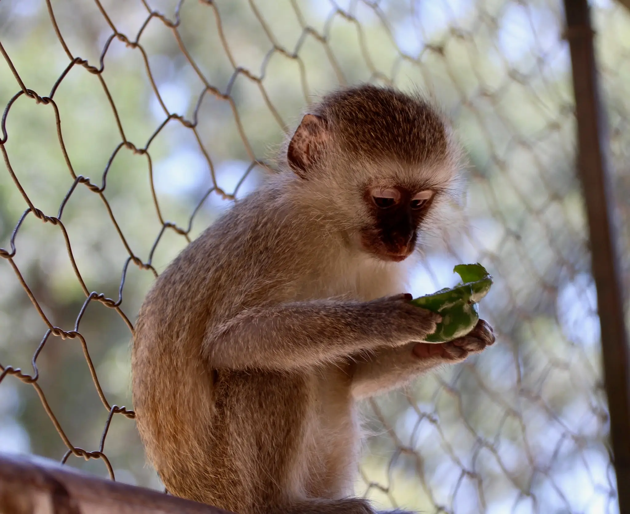 Unser Herz schlägt besonders für Primaten. Vor allem für die neugierigen, sensiblen und hochsozialen Vervet Monkeys (Grünmeerkatzen), die den Großteil unserer Bewohner ausmachen. Aber auch andere Tiere wie Servalkatzen, Hunde, Schweine und ein Pferd haben hier ihren Zufluchtsort gefunden.